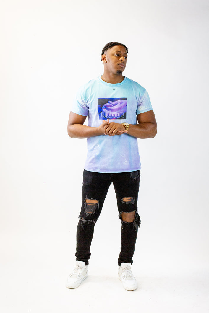 The freedom collection consists of colourful exclusively hand dyed pieces. All pieces are 1 of 1 exclusives and have been curated using vegan dyes and inks.